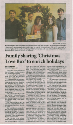 ‘Family Sharing ‘Christmas Love Box’ to enrich the Holidays’ Article under the Features section of ‘The Paper of Braselton, Chateau Elan, and Hoschton’